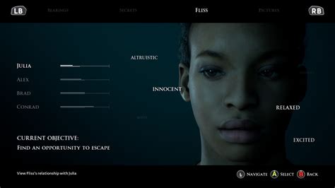 You will switch between controlling the main cast of characters throughout the game, each one plays the exact same with the only aspect you’re able to control are dialogue and action choices they make. Each character has a floating word bank of traits associated with them on the status screen to give you an idea of their personality. These traits will either diminish or become more prevalent depending on how you play but I didn’t notice any actual effect they had in the game.
