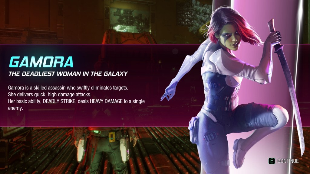 As Starlord you can issue orders to your team, firing off their abilities as they’re needed, abilities are unlimited but have cooldown timers. You also have a ‘super’ ability known as ‘huddle up’ in which Starlord rallies the Guardians, increasing health, damage, and begins playing a song from the game’s soundtrack. It’s something you can use to get out of a bind and provides for cool moments if you get a good song.